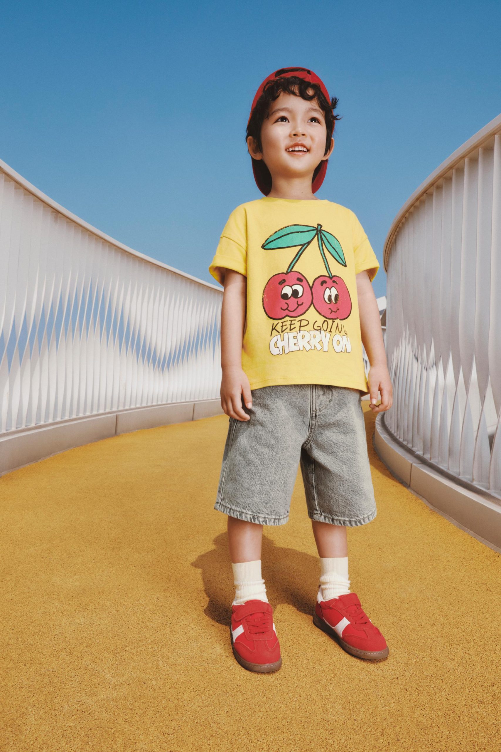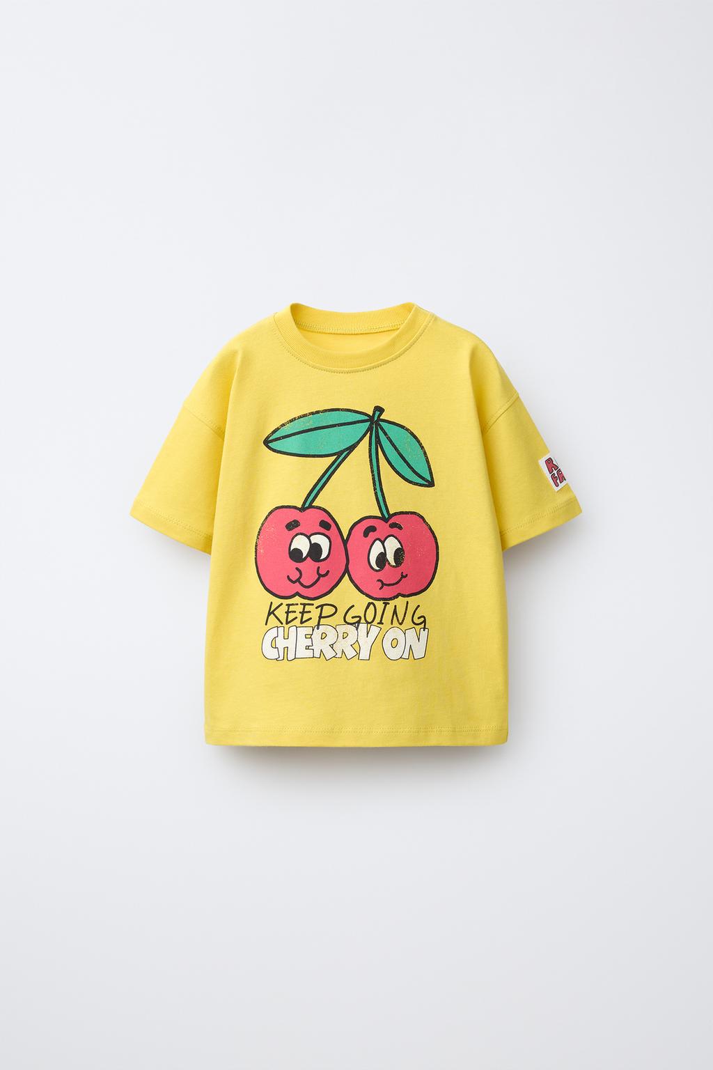 Features: Casual T-shirt featuring cherry print design for a playful and youthful look / soft and breathable fabric for all-day comfort / classic crew neck with ribbed collar / short sleeves with relaxed or regular fit options / versatile and eye-catching — ideal for casual wear, summer outfits, or fashion collections