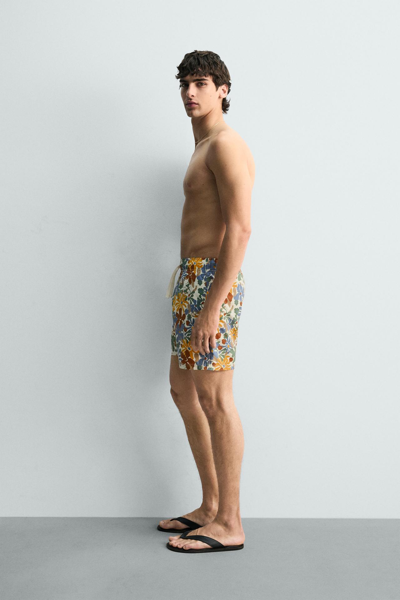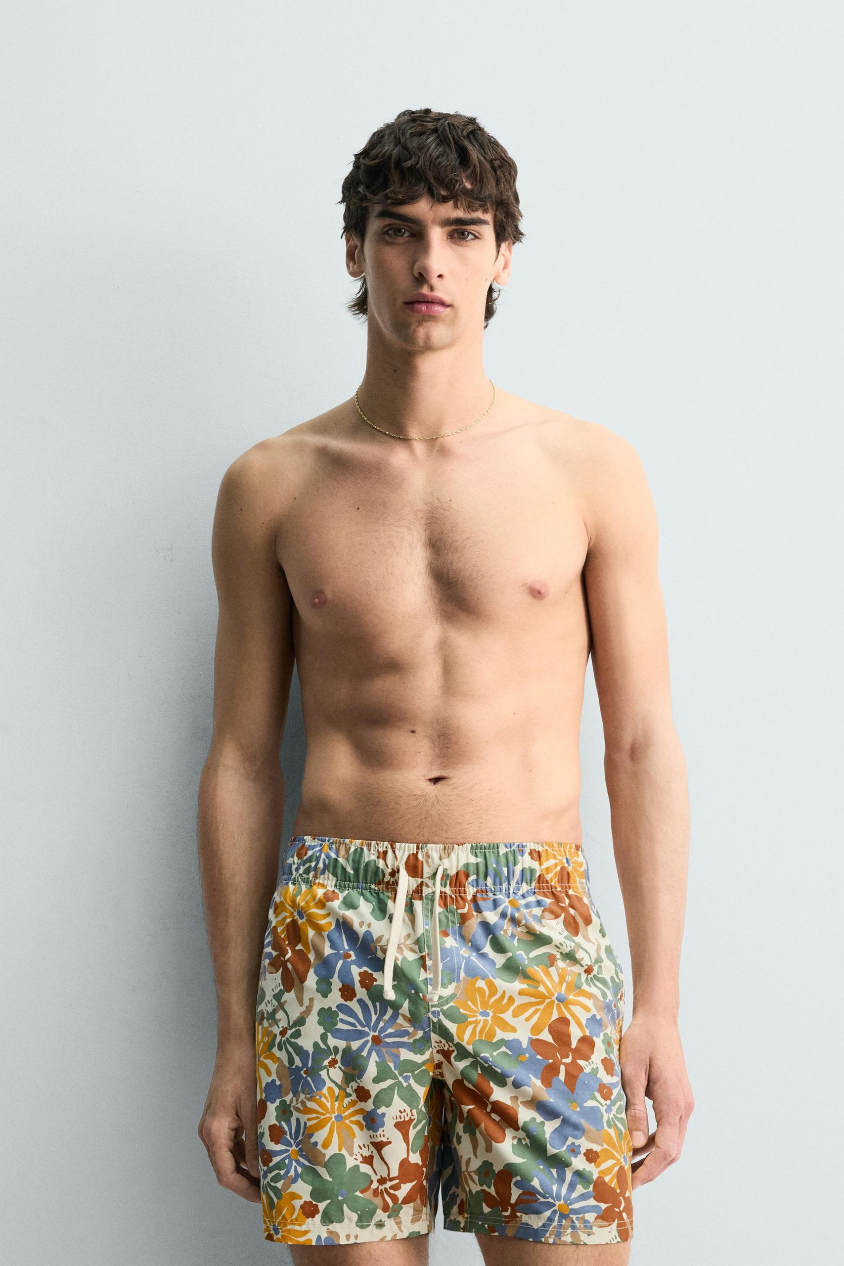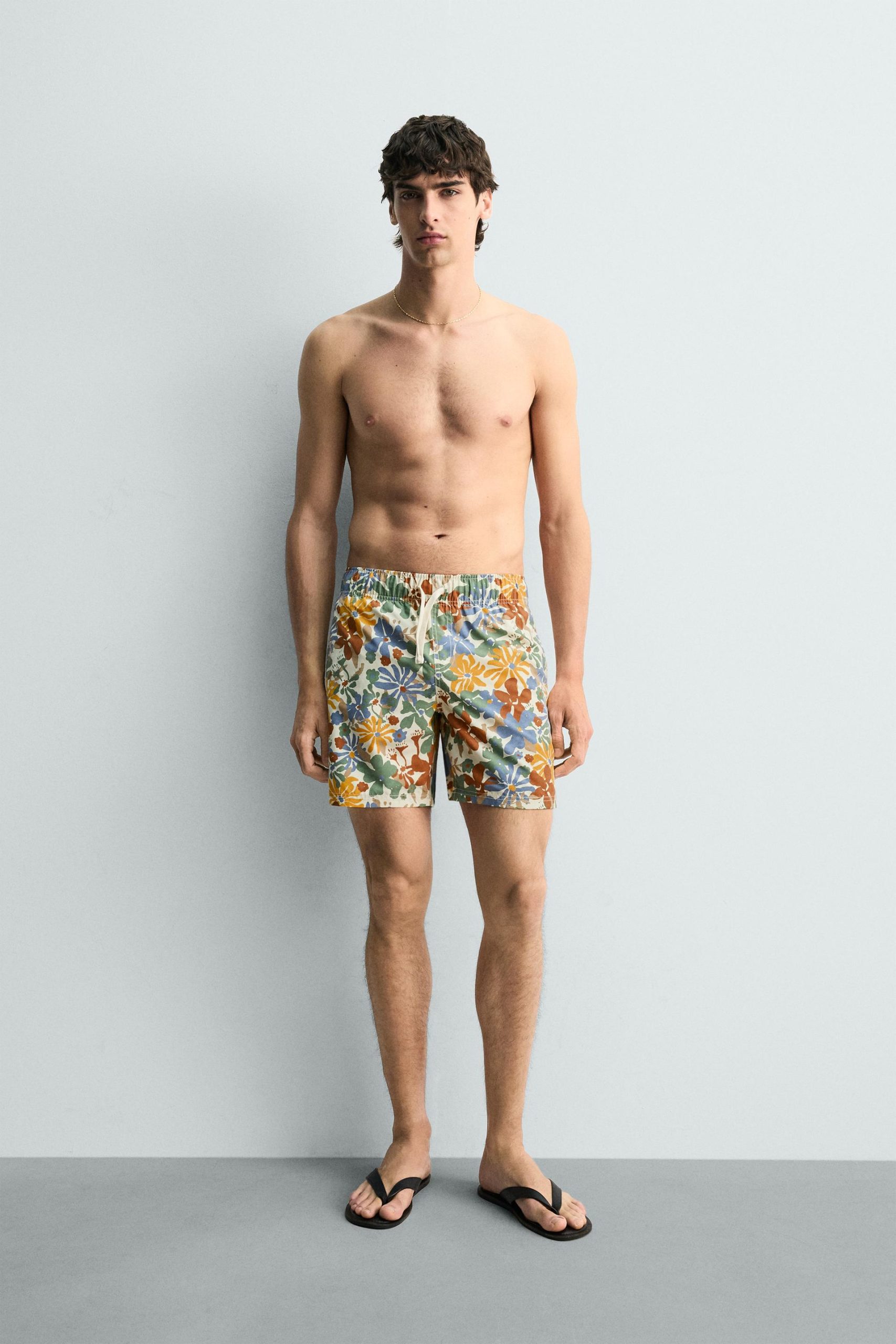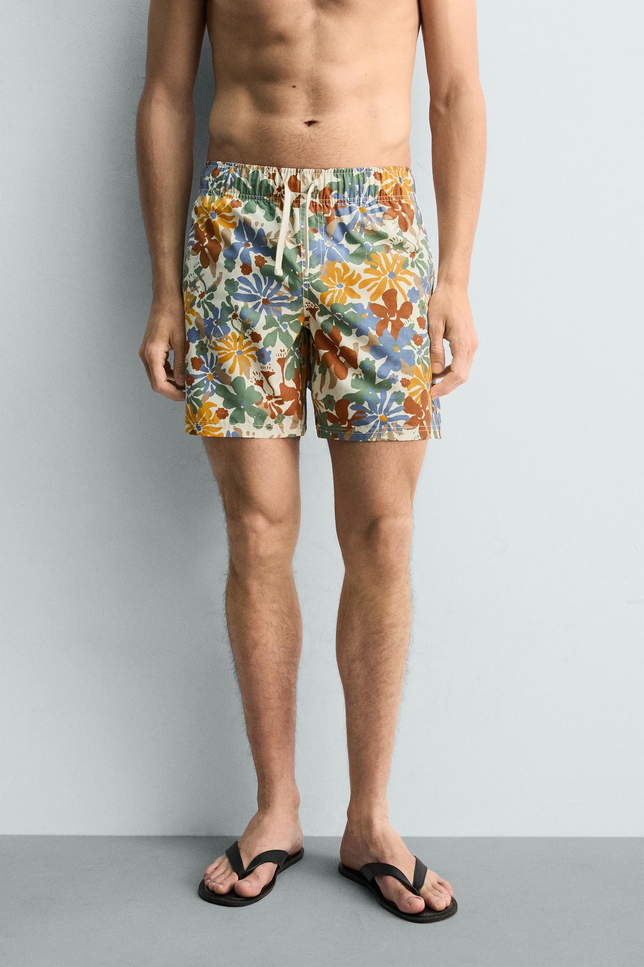 Features: Long-length swim trunks featuring vibrant floral print for a stylish beach-ready look / lightweight and quick-drying fabric for enhanced comfort in and out of water / elastic waistband with adjustable drawstring for a secure fit / inner mesh lining for support and breathability / functional side pockets and optional back pocket — ideal for swimming, beachwear, or vacation use