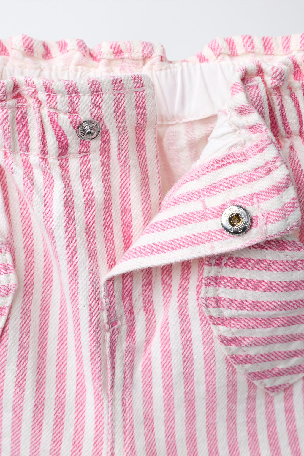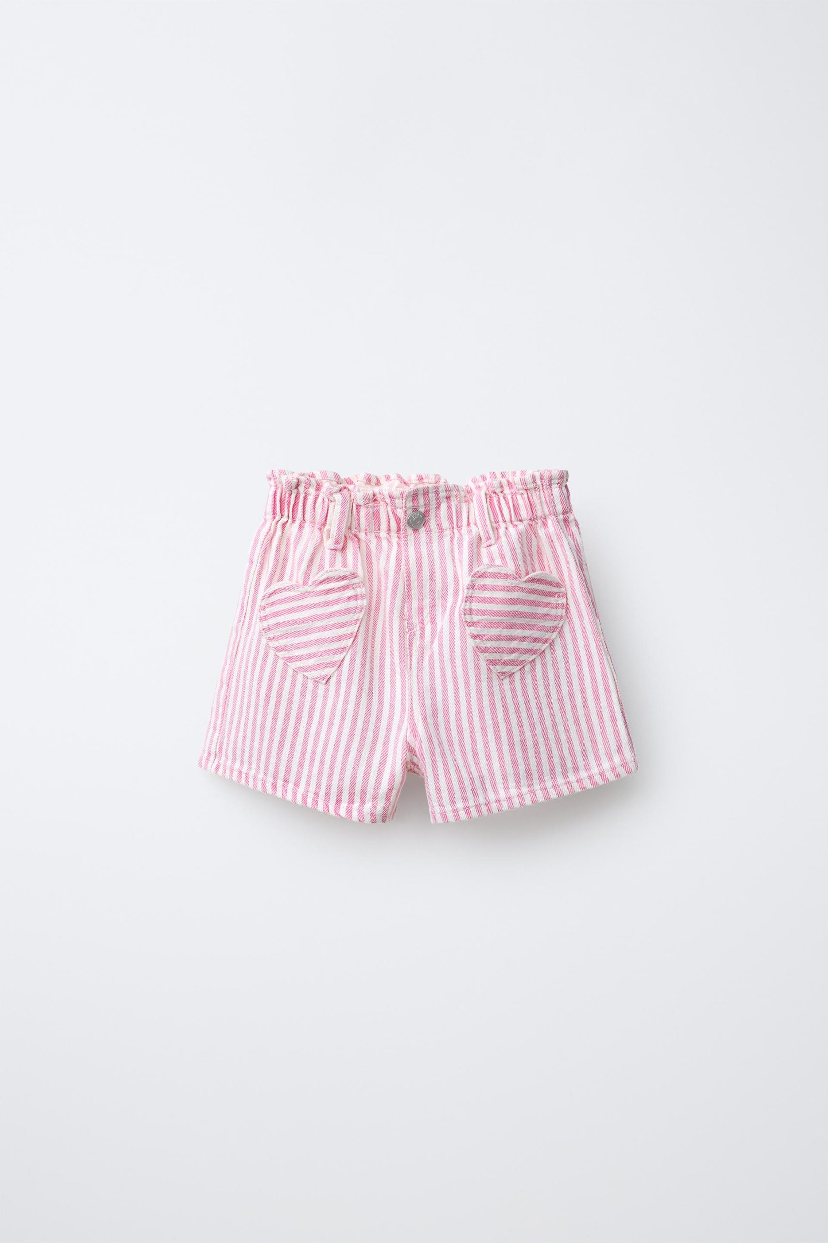 Features: Casual shorts featuring striped twill fabric for a structured yet comfortable feel / unique heart-shaped pocket design adds a playful and distinctive touch / relaxed fit for easy movement and all-day comfort / elastic or adjustable waistband for flexible fit / practical and stylish — ideal for casual wear, summer outfits, or youth fashion collections