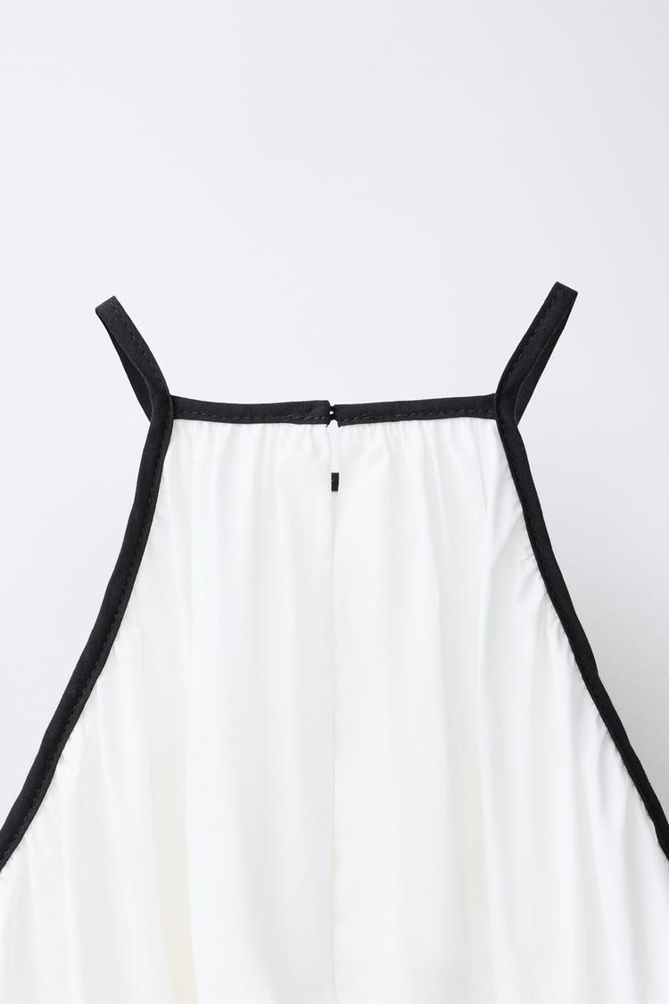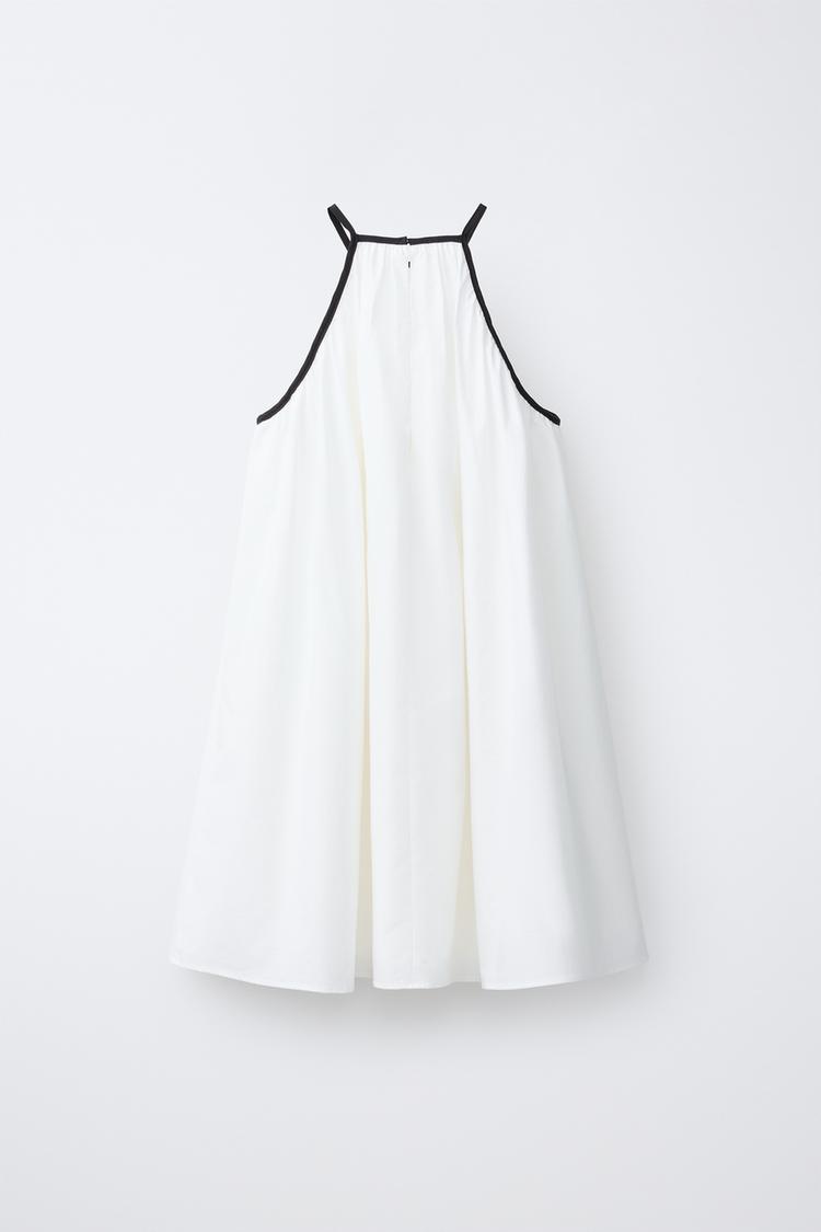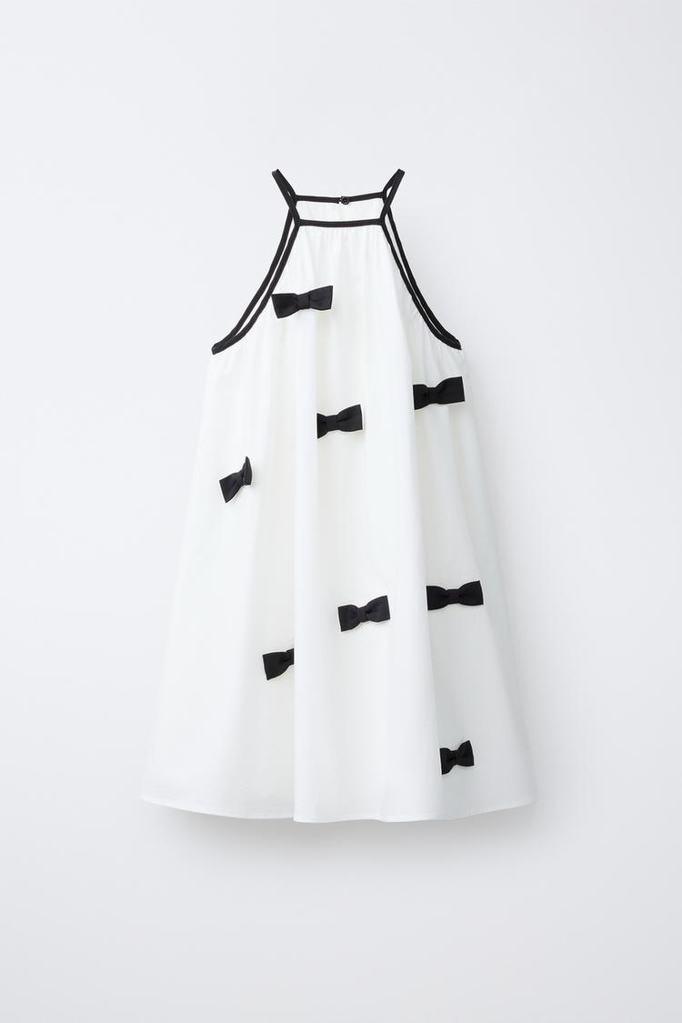 Caratteristiche: Halter neck design highlighting shoulders and neckline for an elegant silhouette / color-blocked panels create a modern and eye-catching look / bow embellishment adds a feminine and decorative touch / lightweight and breathable fabric for comfortable wear / mini or midi length options available — ideal for parties, summer outings, or fashion-forward styling