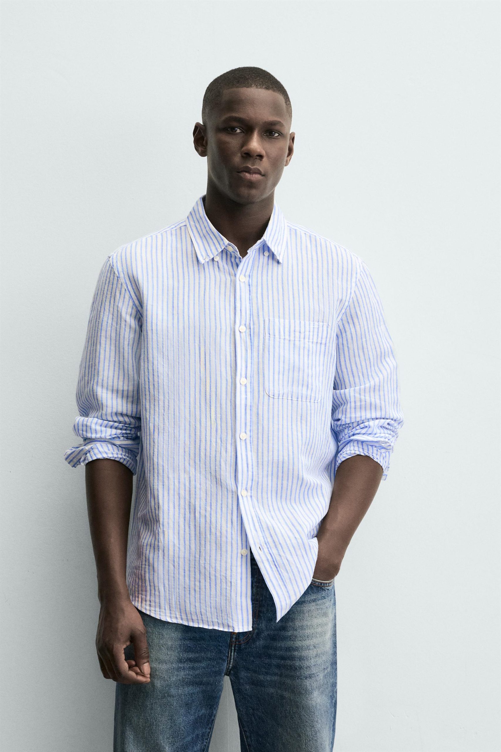 Caratteristiche: Breathable cotton-linen blend fabric with natural texture for lightweight comfort / slim-fit straight-cut design for a clean and refined look / classic collar with button-front closure / long sleeves with adjustable cuffs / elegant and versatile — ideal for summer wear, office outfits, or smart-casual styling