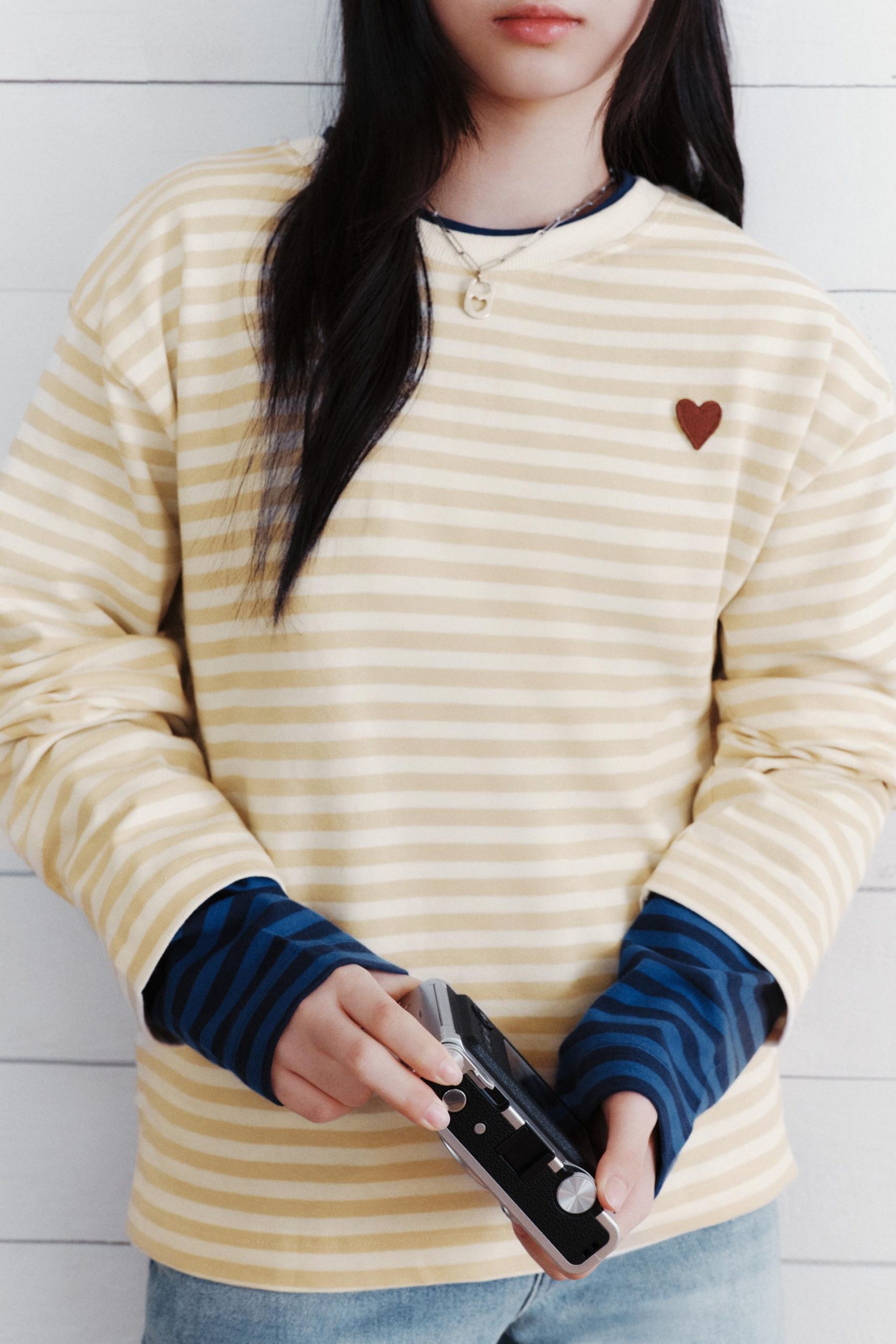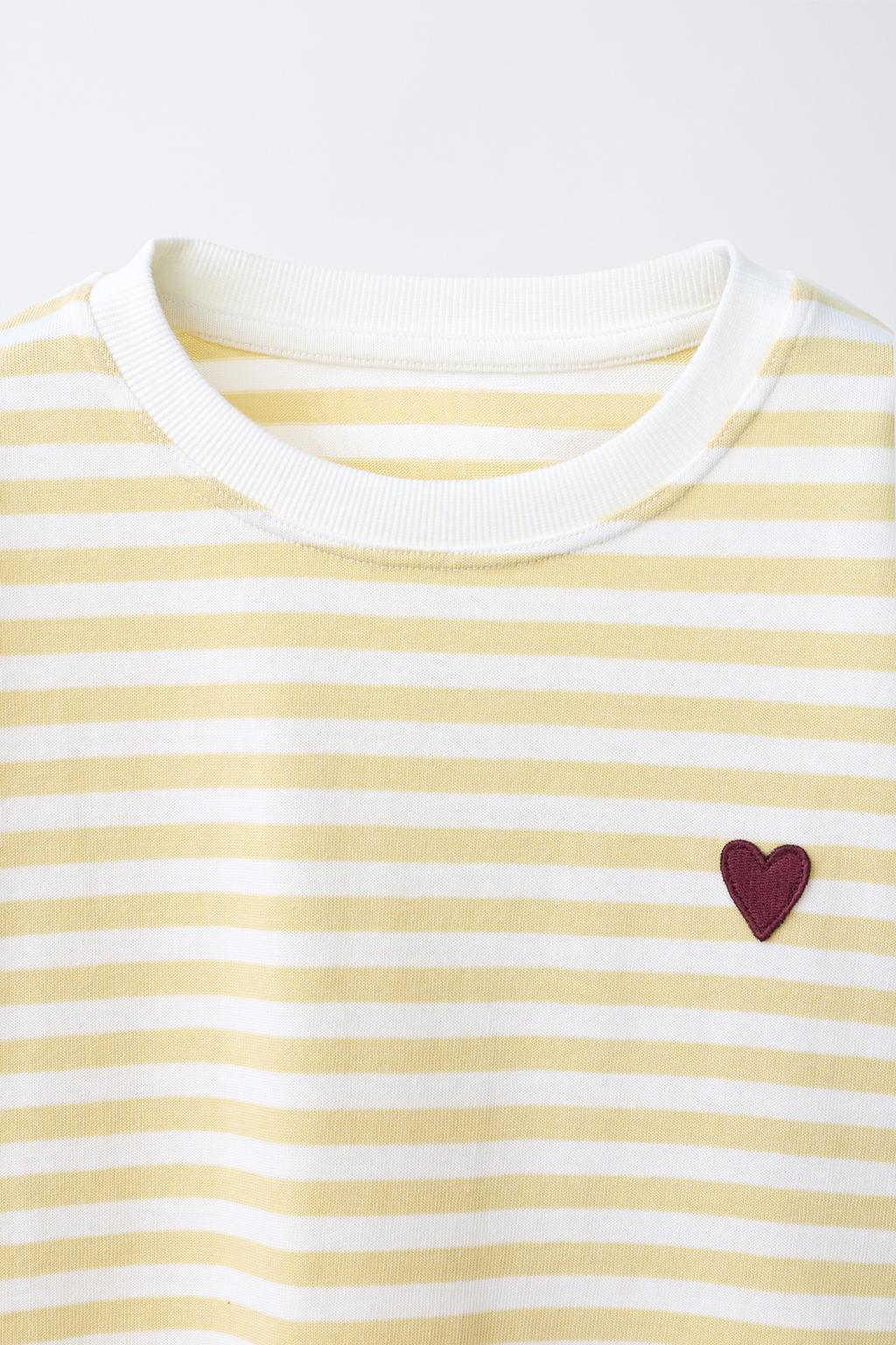 Caratteristiche: Classic striped T-shirt design with heart-shaped embroidery for a playful and stylish touch / soft and breathable fabric for everyday comfort / crew neck with ribbed collar for a clean look / short sleeves with relaxed fit / lightweight and versatile — ideal for casual wear, streetwear, or summer outfits