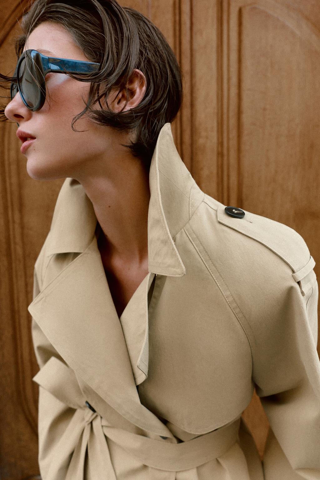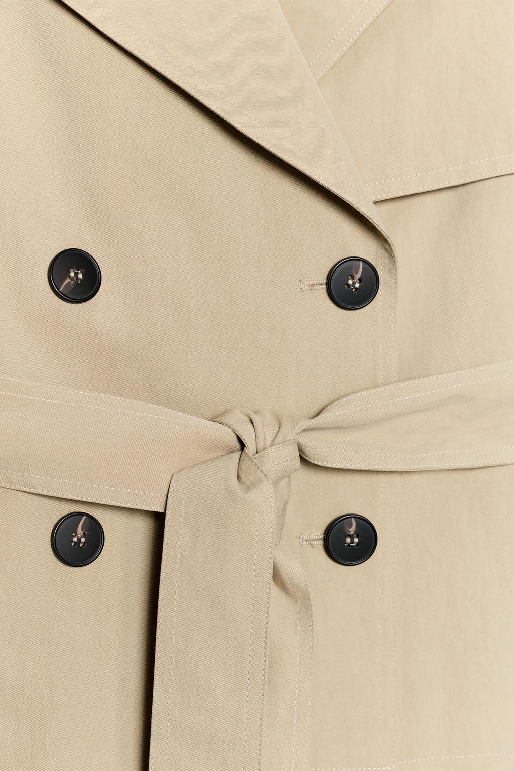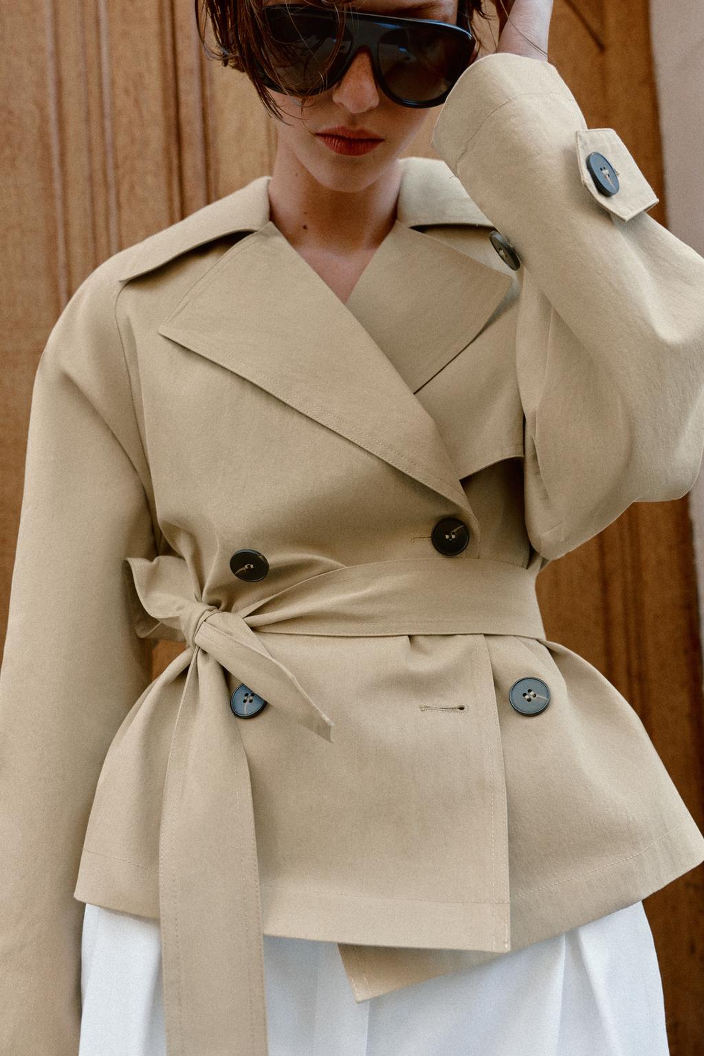 Caratteristiche: Stylish short trench coat with adjustable belt for a flattering, tailored fit / lightweight yet structured fabric for comfort and elegance / classic notched collar with front button closure / adjustable cuffs and functional side pockets / versatile design — perfect for casual wear, office outfits, or transitional seasons