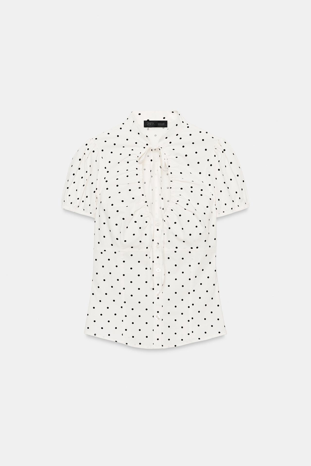 Features: Lightweight poplin top with bow embellishments for a refined and feminine look / crisp fabric texture with breathable comfort for warm weather / clean and structured silhouette with elegant detailing / versatile styling suitable for casual or smart-casual outfits / easy to pair with skirts, trousers, or shorts